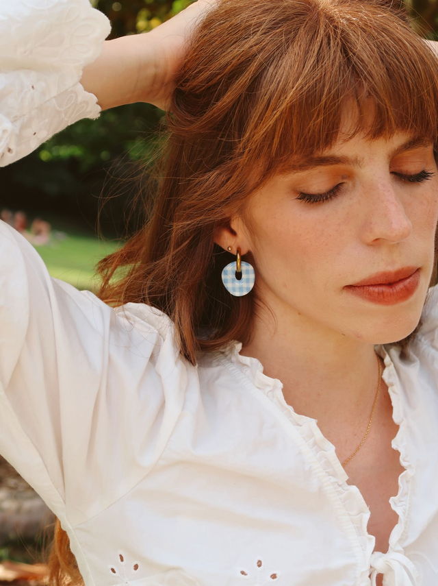 Inspirées du motif intemporel des nappes à carreaux de pique-nique 🧺, ces boucles revisitent l’esprit guinguette dans une version graphique et moderne. Un clin d’œil au rétro qui reste facile à porter au quotidien.